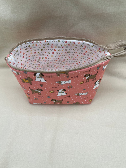 Sold outZipper Bucket Bag - Tiny Dogs Salmon
