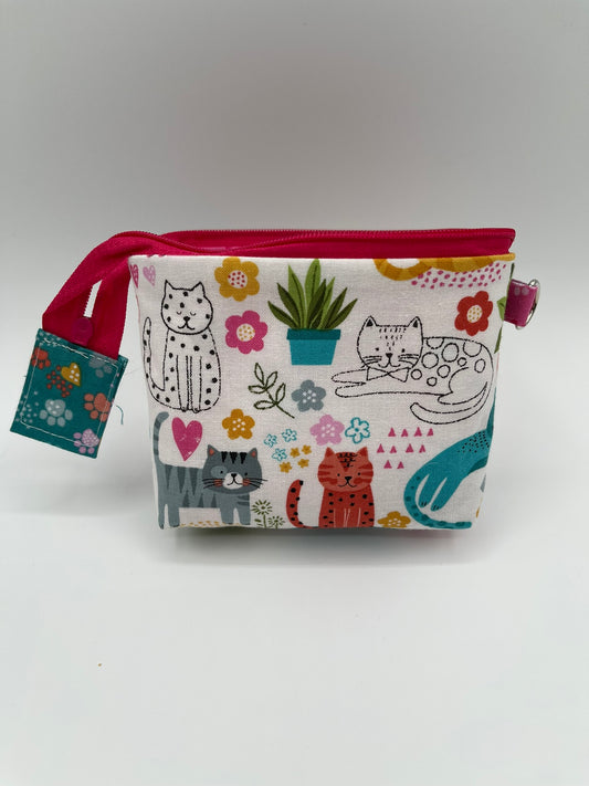 Zipper Bucket Bag - Cats, Flowers, and Hearts