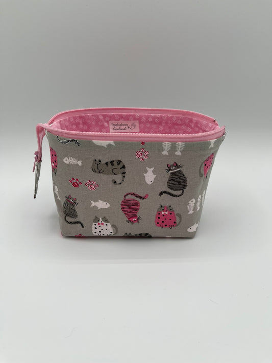 Sold outZipper Bucket Bag - Cats on Gray