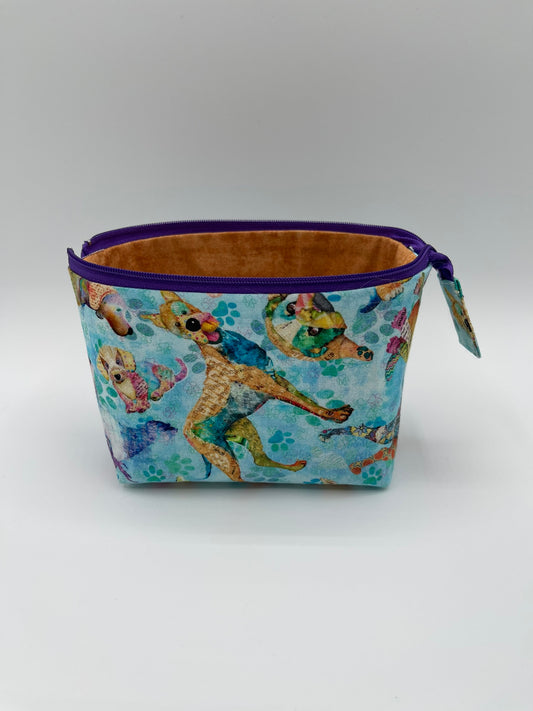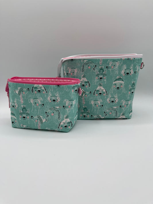 Zipper Bucket Bag - Tiny Dogs Blue/Green