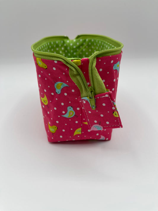 Zipper Bucket Bag - Tiny Birds on Pink