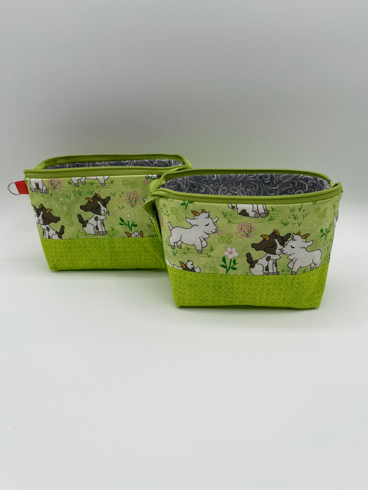 Zipper Bucket Bag - Goats on Green