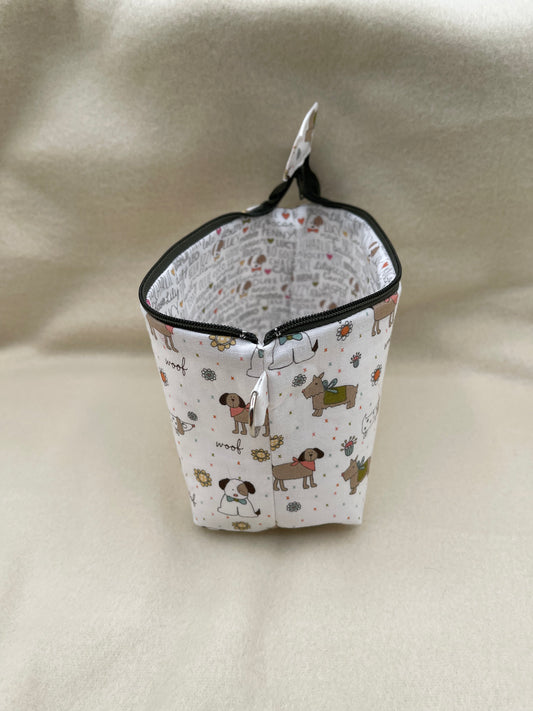 Zipper Bucket Bag - Tiny Dogs White