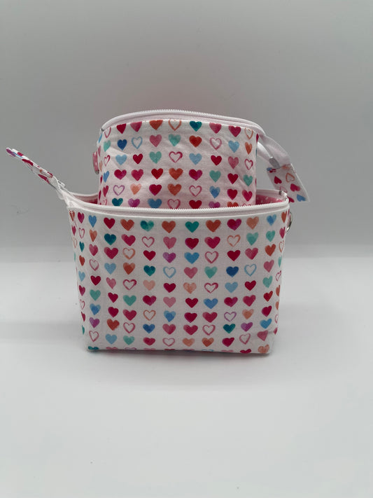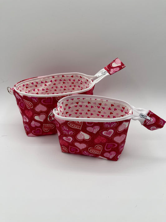 Zipper Bucket Bag - Red and Pink Hearts on Red