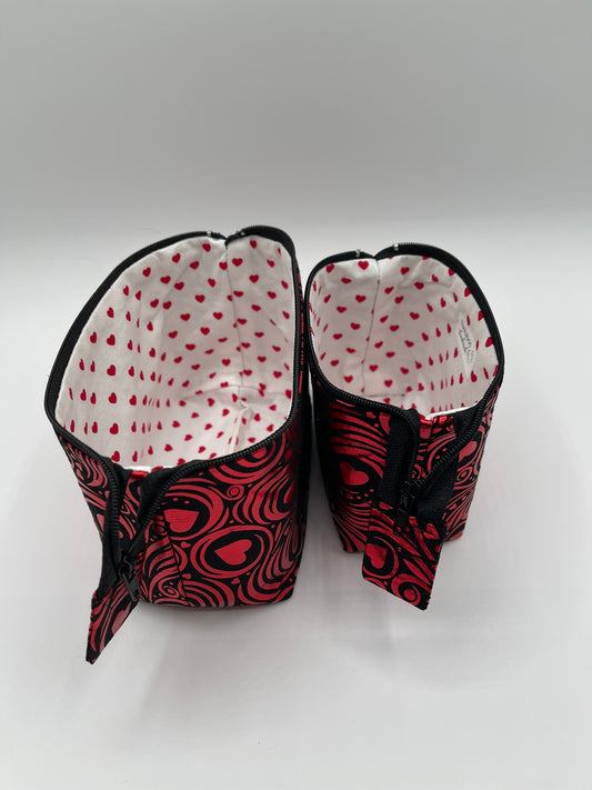 Zipper Bucket Bag - Red and Gray Hearts on Black