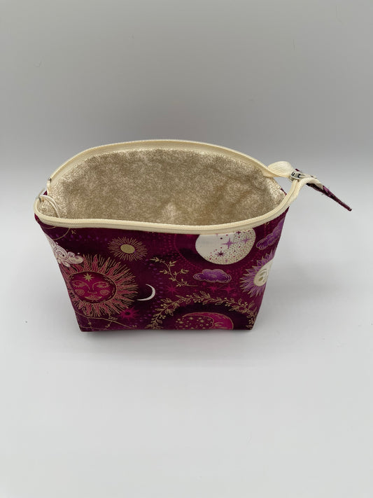 Zipper Bucket Bag - Moon and Sun on Maroon