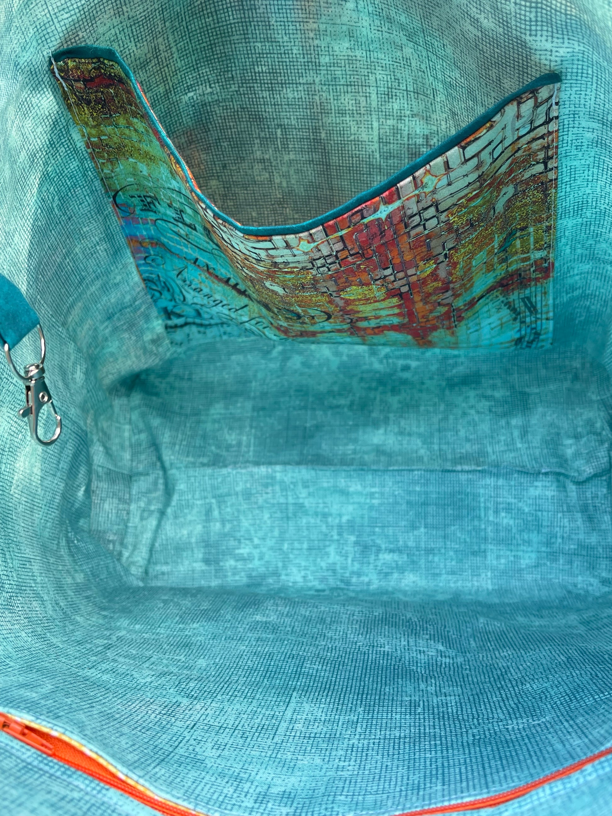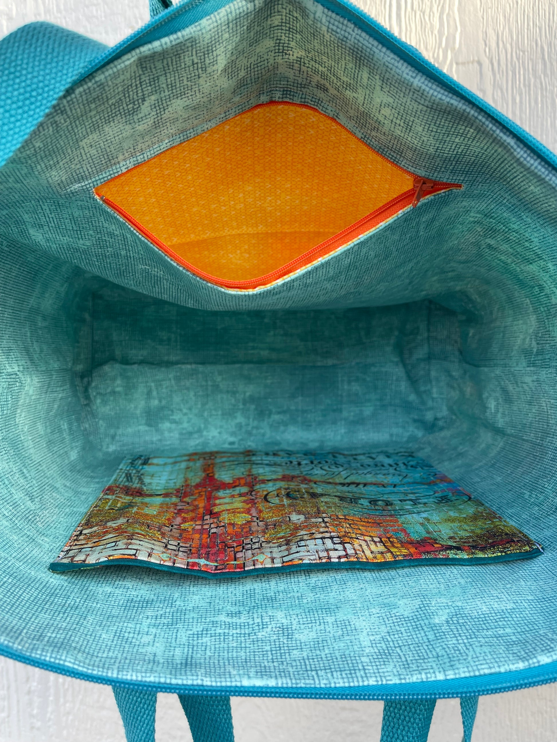 Designer zipper tote bags are very sturdy. They easily stand up on their own. The large has two sets up handles: a short set for lifting the bag and a long set to throw over your shoulder to carry. The bottoms are always either duck cloth or a heavy cotton, for durability. They have a zipper top and 2 large pockets inside, as well as hook for your keys.