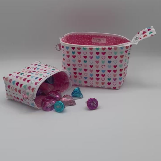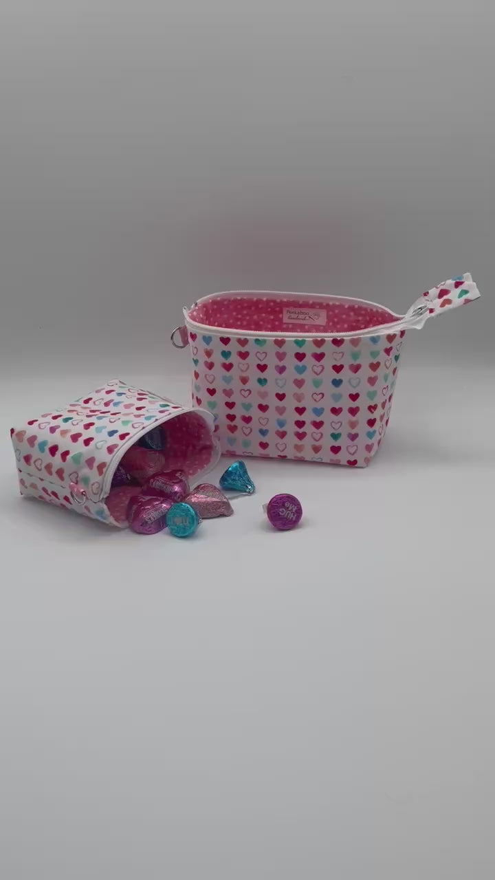 Zipper Bucket Bags open wide to make it easy to put things in and take them out. Great for makeup, treats, coins, small toys, or any other little things you want to keep together.