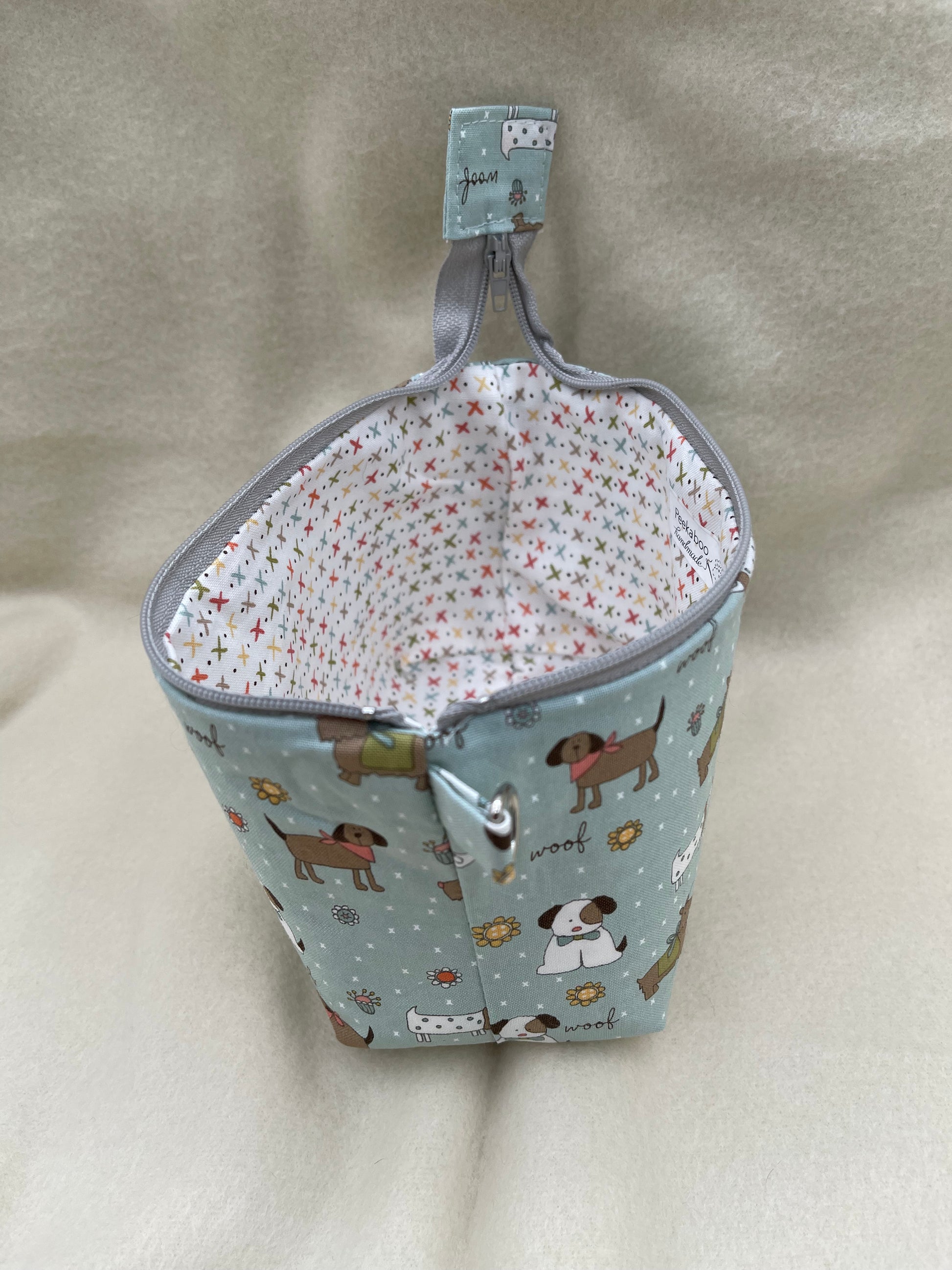 Zipper Bucket Bag - Tiny Dogs Blue/Green
