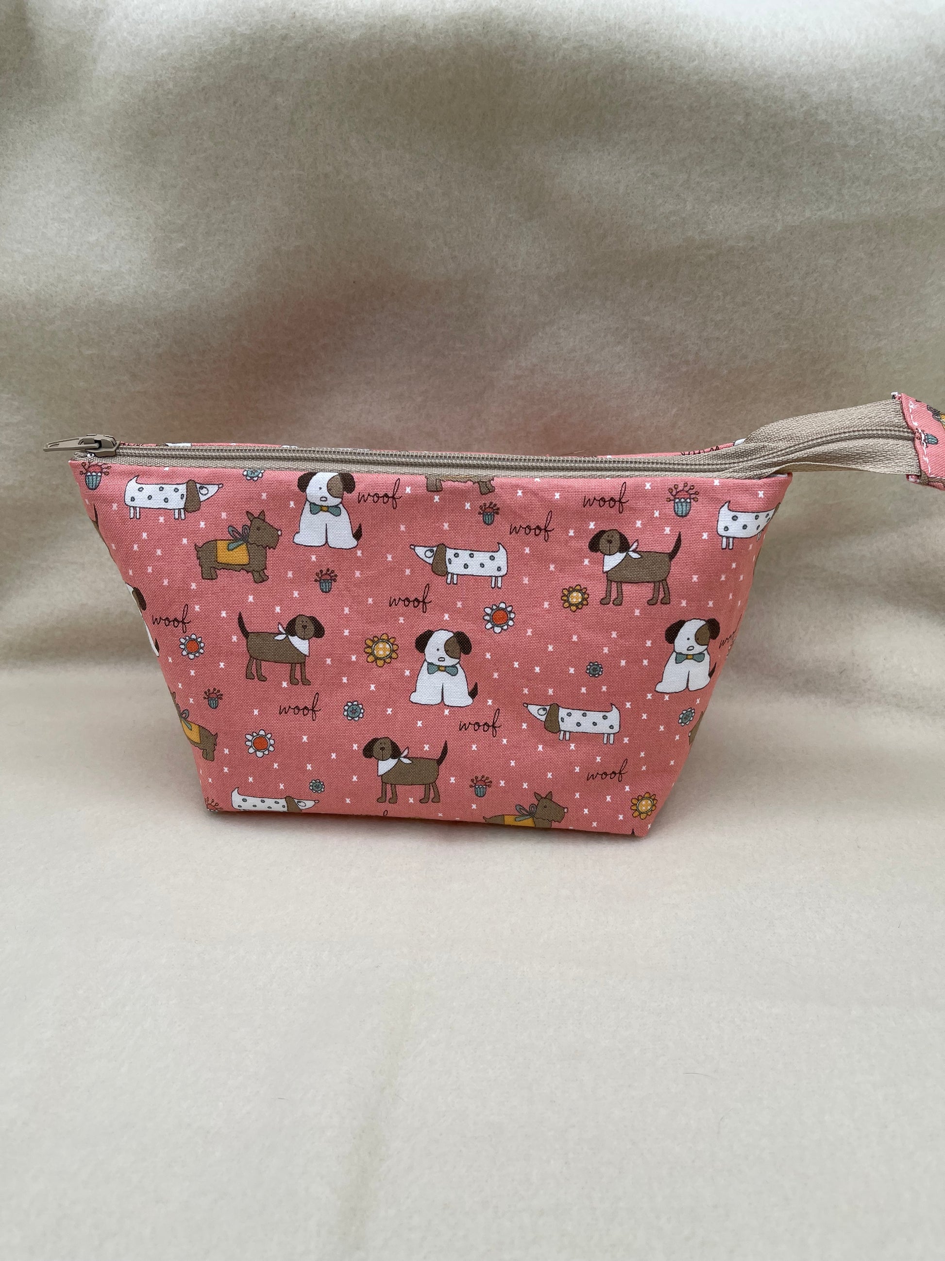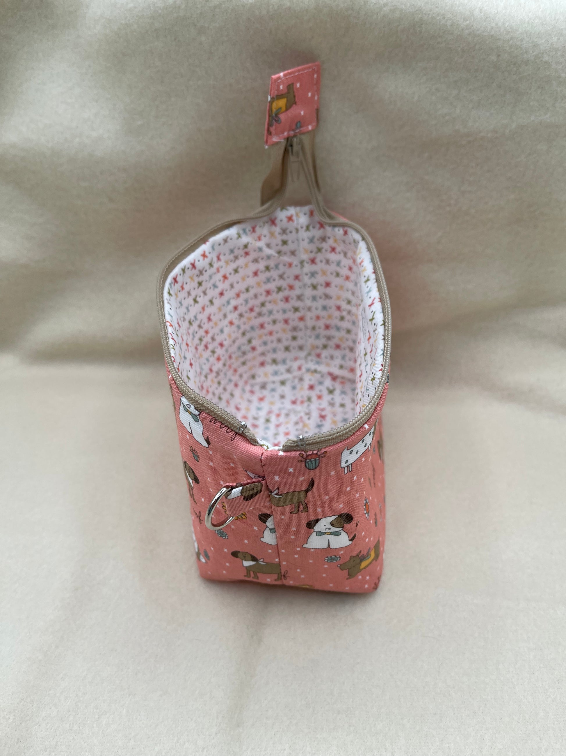Zipper Bucket Bag - Tiny Dogs Salmon